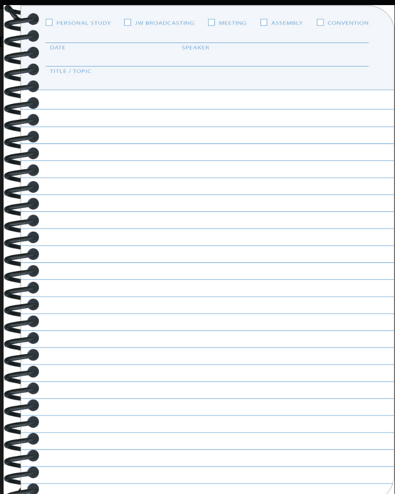 Beautiful spiral notebook to record handwritten notes from personal study, meetings, assemblies, convention and JW Broadcasting.